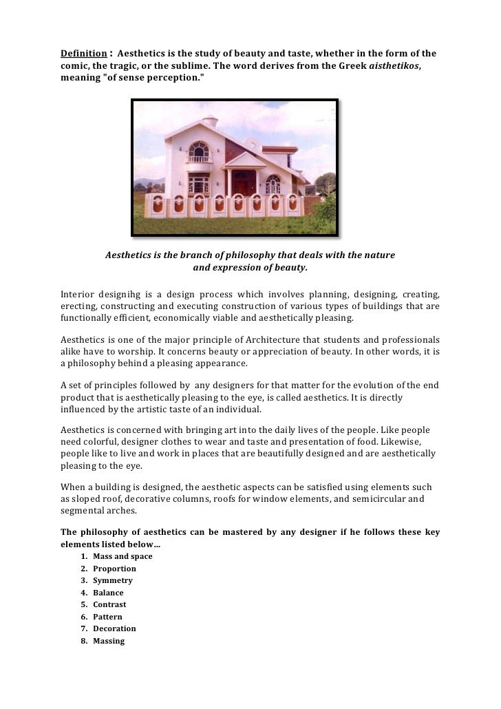 Connect and share knowledge within a single location that is structured and easy to search. It is closely related to the philosophy of art, which treats the nature of art and the concepts in terms of which works of art are interpreted and this article addresses the nature of modern aesthetics and its underlying principles and concerns. Aesthetic means the pleasant, positive or artful appearance of a person or a thing. The view that the primary bearer of aesthetic value are experiences by way of answering criticisms of this conception of aesthetic value, it argues that it is coherent, that it is grounded in the history of thought about the aesthetic, and that it does not succumb to.